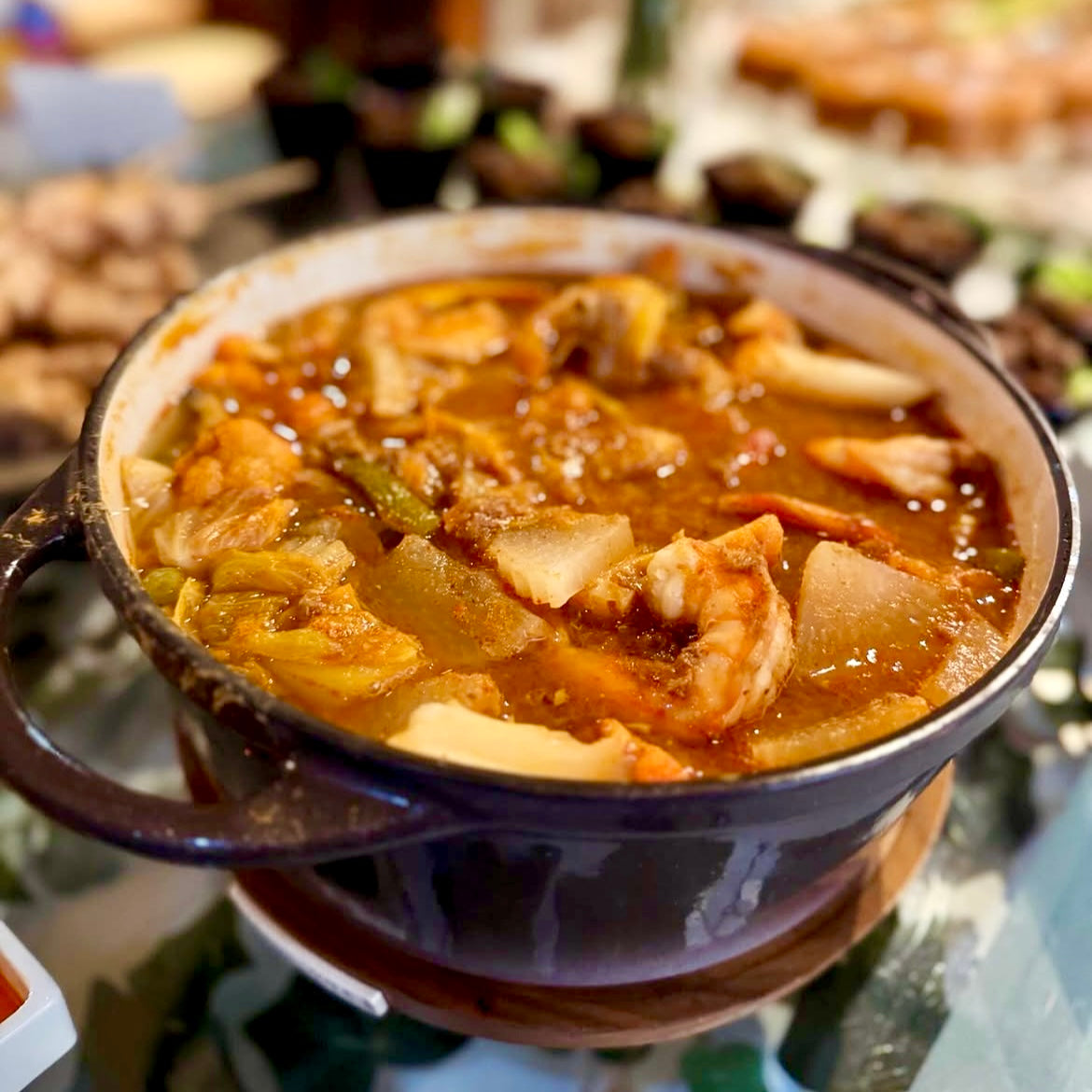 <原材料> 海老、鯵、鶏がらスープ、大根、白菜、にんじん、ヤングコーン、いんげん、タマリンド、ナンプラー、きび糖 (ペースト)乾燥唐辛子、塩、ホムデン、にんにく、ガピ、ガチャーイ)